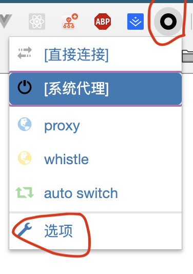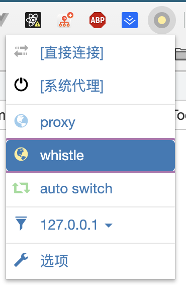配置好后选择whistle代理即可