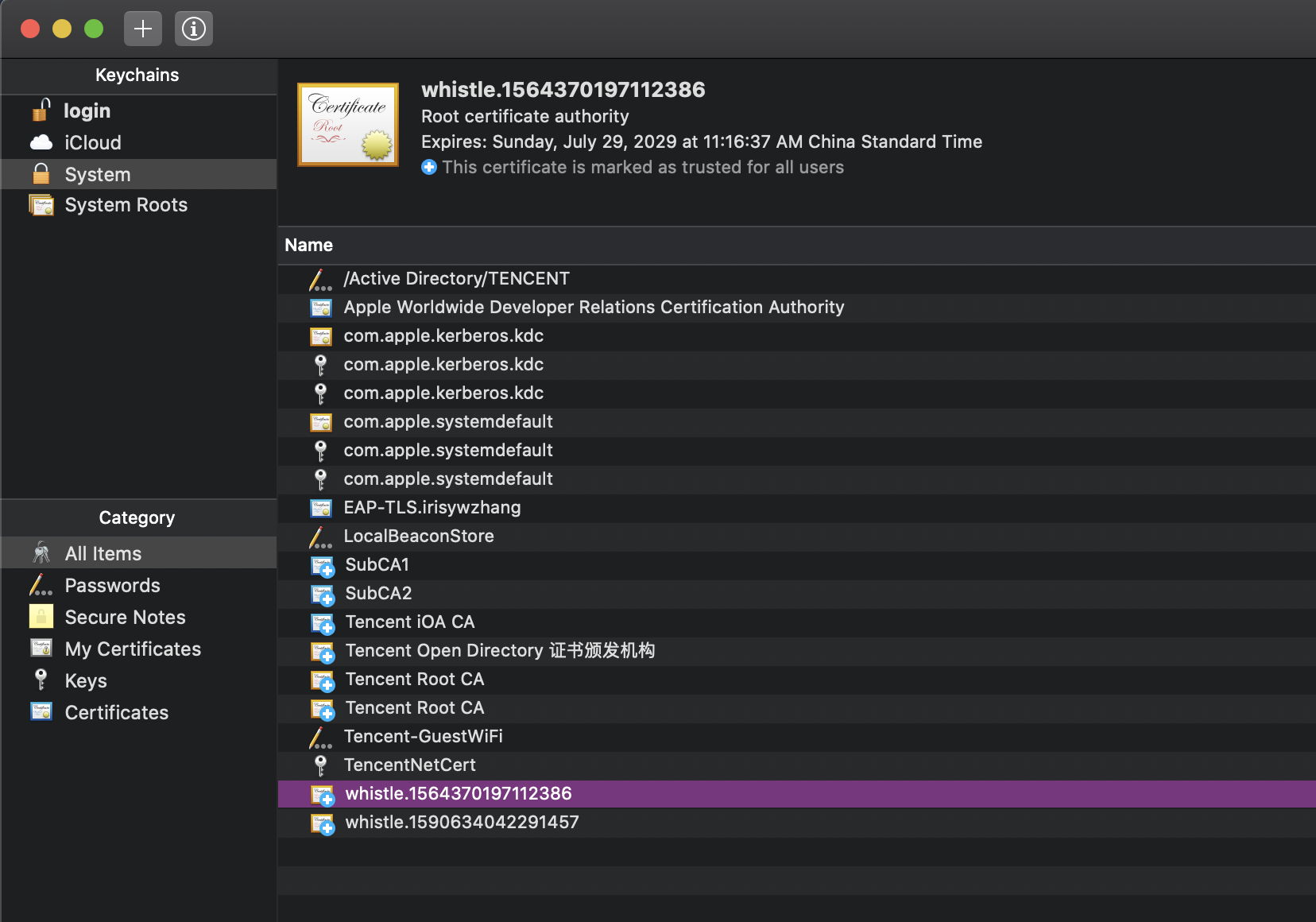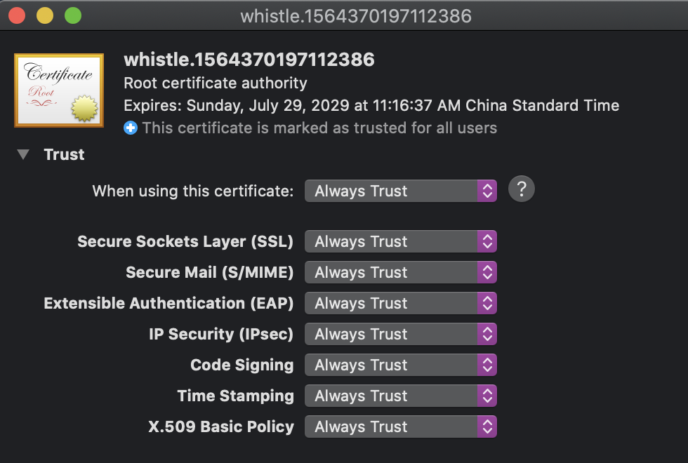 双击该证书,设置为 Always Trust